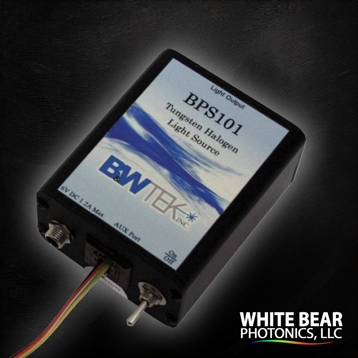 BPS101 Tungsten Halogen Light Source The BPS101 is a compact, high-performance constant current light source optimized for spectroscopy applications in the 350 nm to >2600 nm range. Utilizing a replaceable tungsten halogen lamp rated for 10,000 hours and delivering a stable 2800 K color temperature, the BPS101 ensures reliable, continuous illumination for transmission, absorption, and reflectance experiments.
